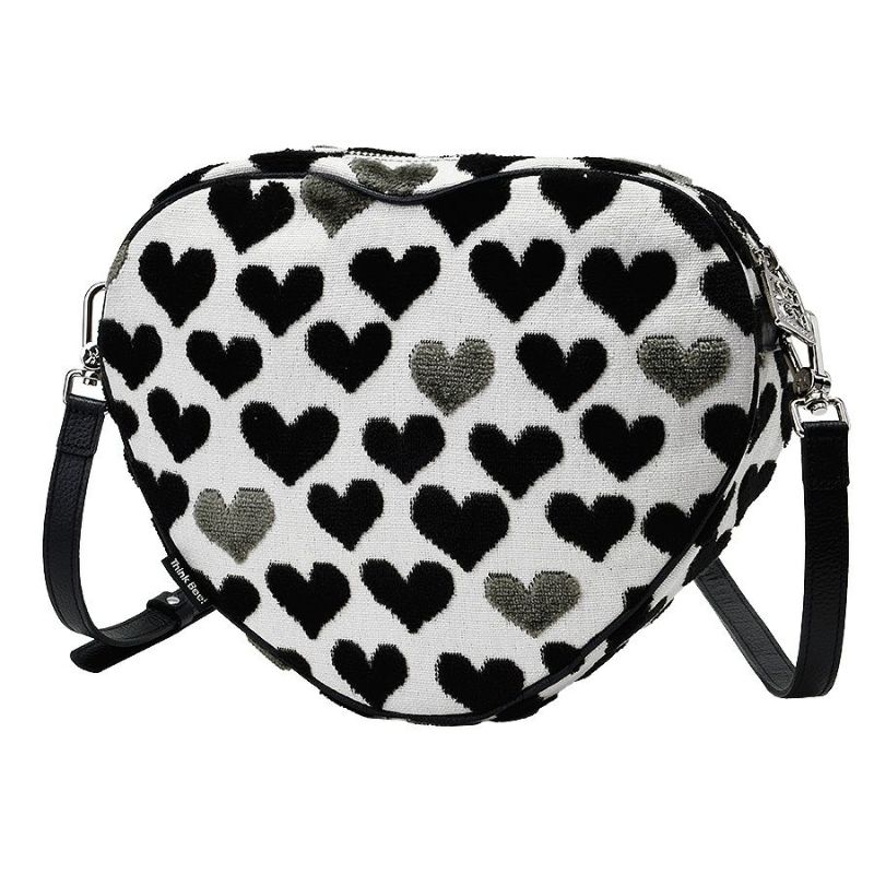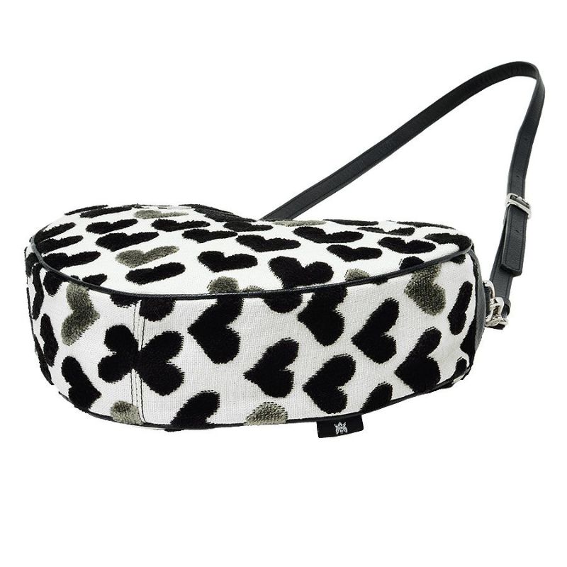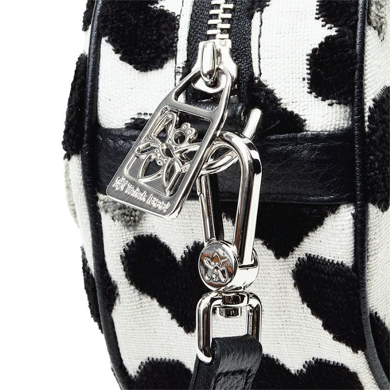 表地カラーに合わせてショルダーストラップやパイピングは、ブラックのシュリンクレザーで印象を引き締め、ころんとしたハート型を際立たせています。