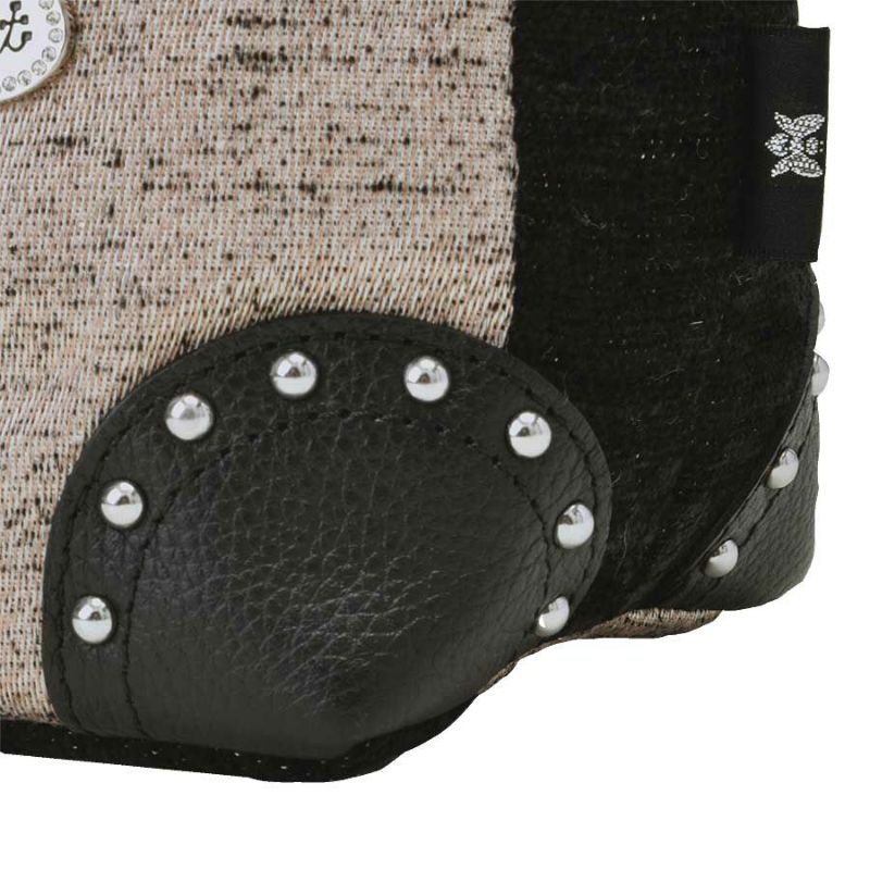 シュリンクレザーにスタッズを配したコーナー革で、いたみやすい角の補強にも配慮しました。