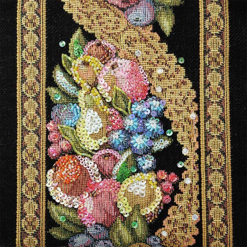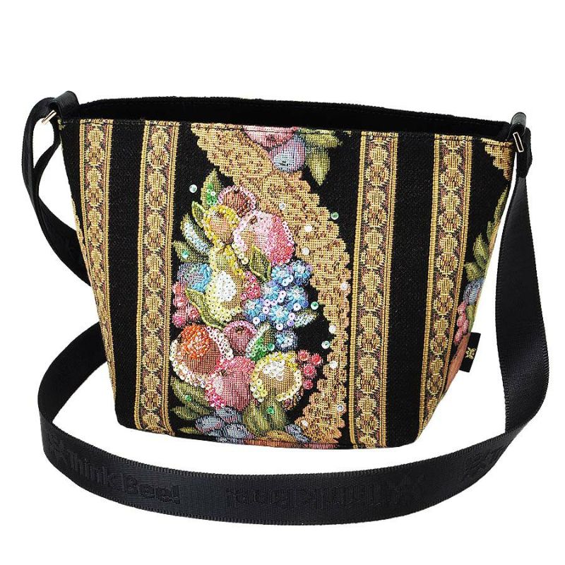 このイタリア製ゴブラン織生地に、シンクビー! が得意とするビーズ&スパンコールで煌めき装飾を丁寧に施しました。