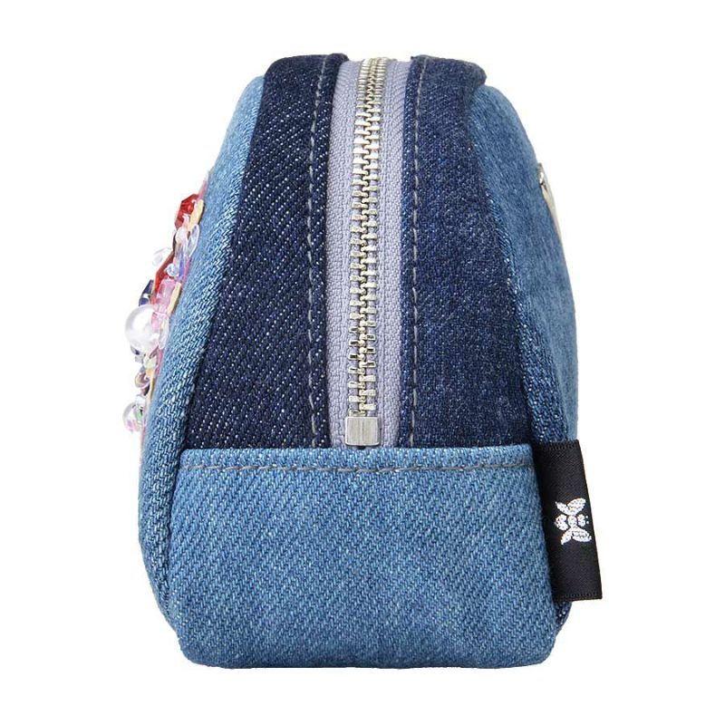 選び抜かれた3面のカラーバランスと、表面の装飾とのマッチングで小さいながらも存在感のあるキュートなポーチです。