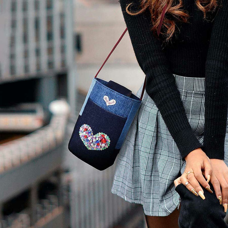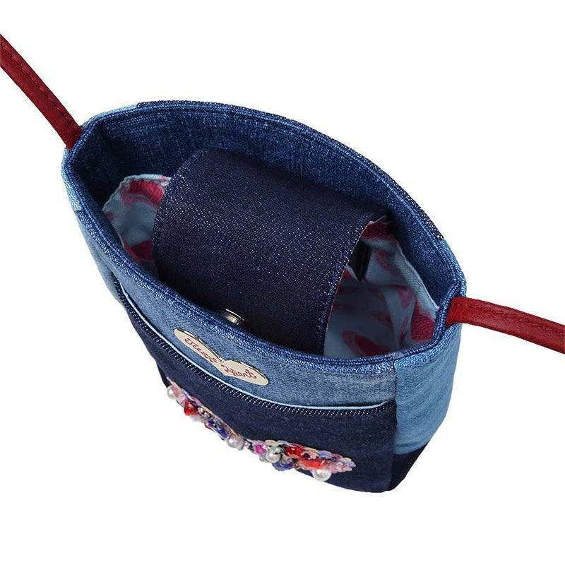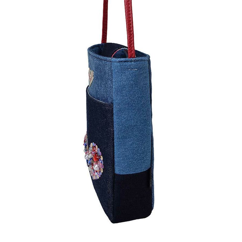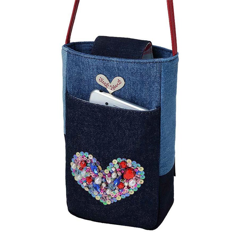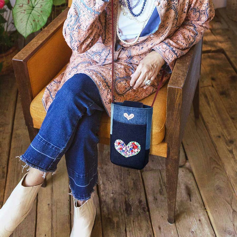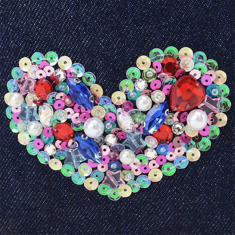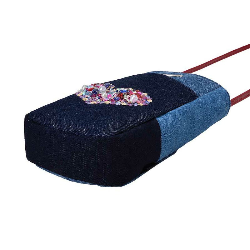 ときめかずにはいられない、オーロラカラーのスパンコールで縁取った、ぎっしり詰まった煌めくハートモチーフはデニムとも好相性。