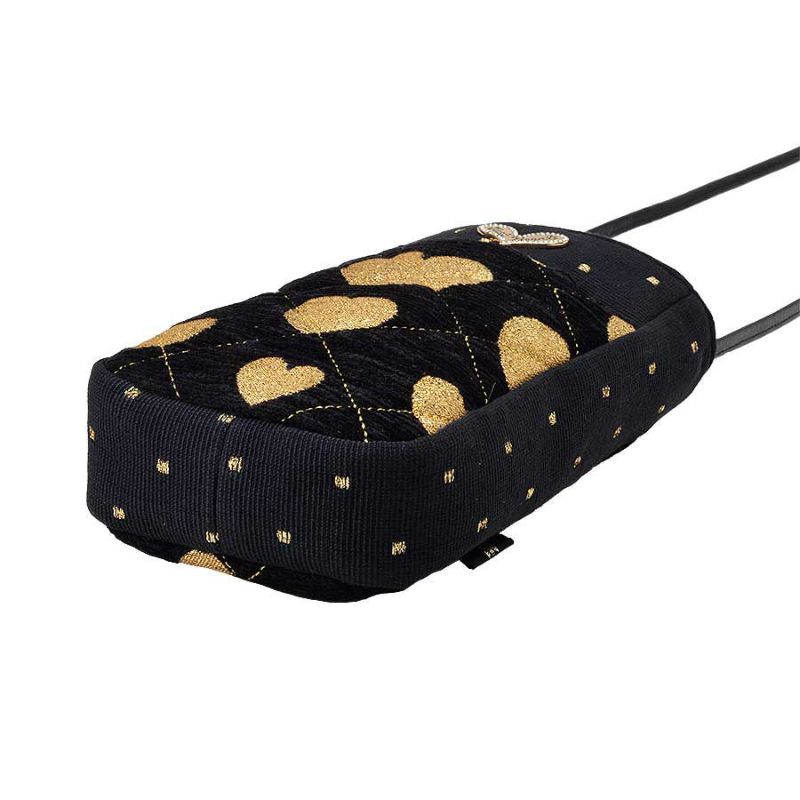 ブラックとゴールドのコントラストを効かせた、ゴールドのハートにステッチが効いた生地とドット柄のコンビネーション。