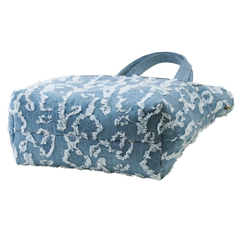 ローズ柄の周辺がヒゲのような立体感のあるデニムジャカードに、ロゴのみあしらったインパクト抜群のトートバッグ。