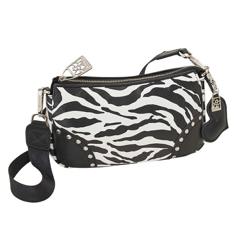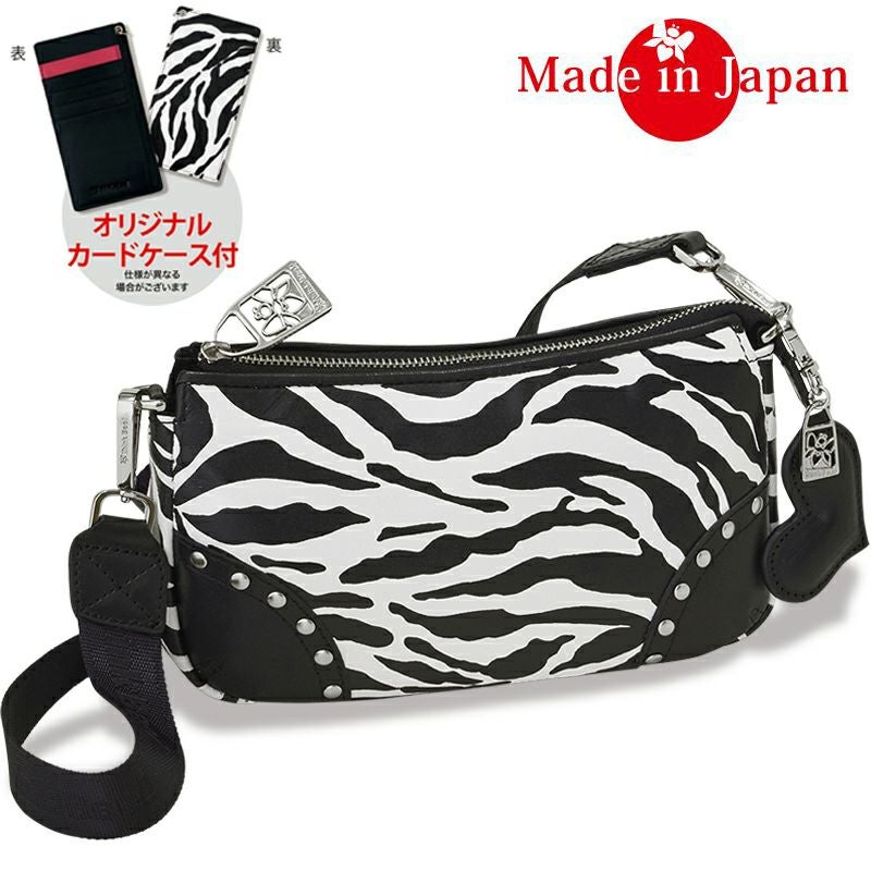 ゼブラ柄をプリントした牛革を用いたポシェット感覚のミニショルダーバッグ。