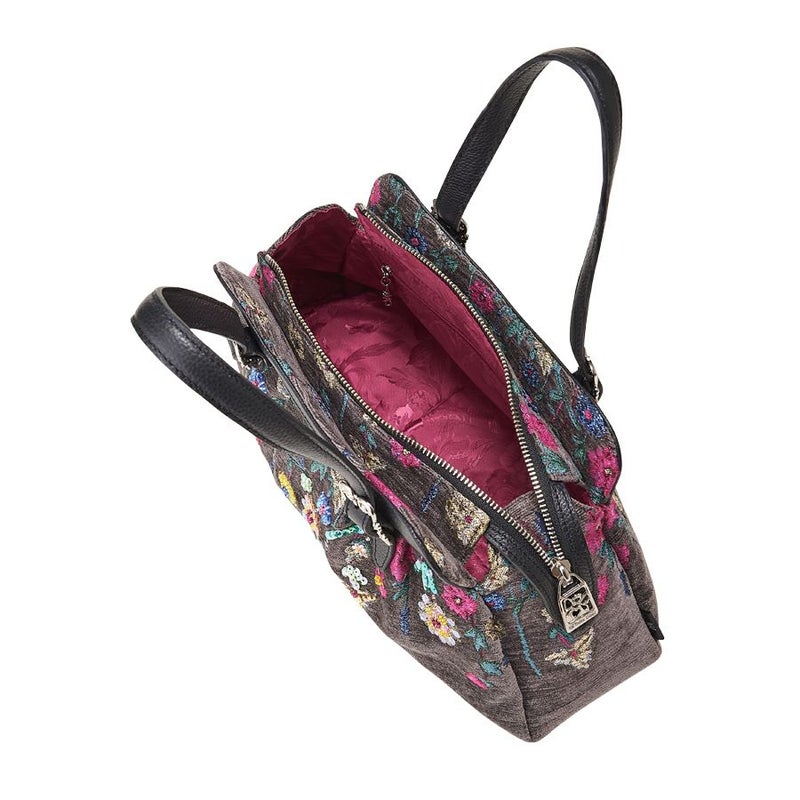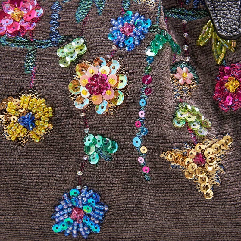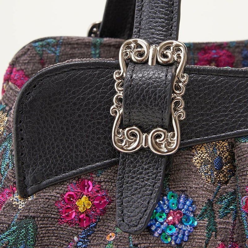| 素材 | | 表地原産国 | トルコ | | 表地 | 本体:ビスコース64%・ポリエステル36% | | 裏地 | ポリエステル100% | | ハンドル | 牛革 | | その他 | ビーズ・スパンコール・クリスタルガラス | | サイズ(約) | | 本体(突起部を除く最大) | H 14.5 × W 38 × D 10 cm | | ハンドル立ち上がり | 15 cm/- | | ショルダーストラップ長さ | -/- | | 重さ | 470g | | | 仕様 | | 開口部 | ファスナー式 | | メイン室 | 1 /- | | 内側 | ファスナー付ポケット×1・オープンポケット×2 | | 外側 | - | | ハンドル | 2 /- | | 底鋲 | 4 | | その他 | 作品により柄の出方や装飾が異なる場合があります表面片側にビーズなどの装飾 | | 補足情報 | | - | |