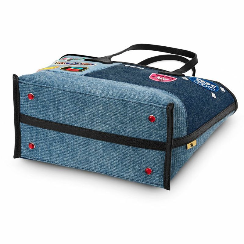 ウォッシュ加工でトーンの差をつけたデニム生地の組み合わせが目を引くトート。