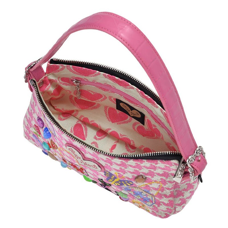 裏地もベージュ地にピンクハートのプリント生地でキュートに♡