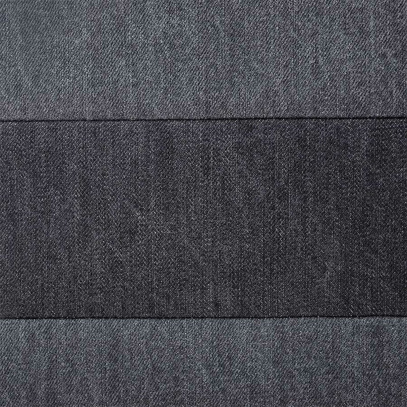 ブラックデニムにウォッシュ加工をほどこし、絶妙に落ちたグレーとの切り替えで、横ボーダーのアクセントに。