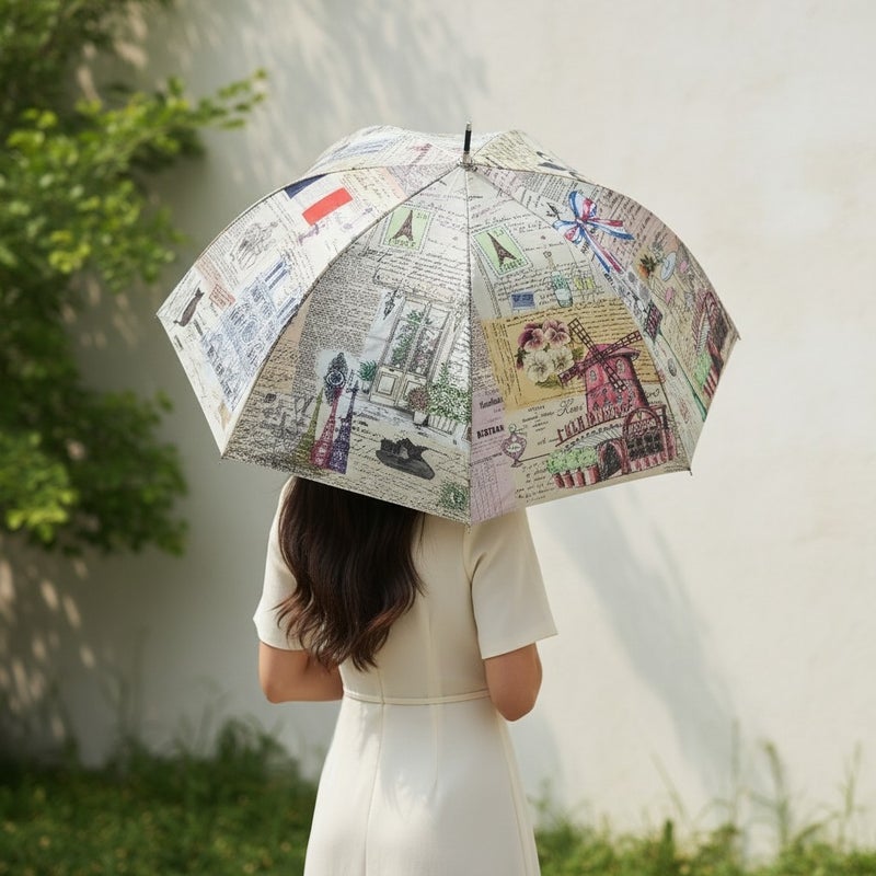 晴れの日は日傘として、雨の日は雨傘として、いつでもお使いいただける事にこだわりました。どんなシーンでも、お気に入りの傘とバッグのコーディネートが楽しめます。