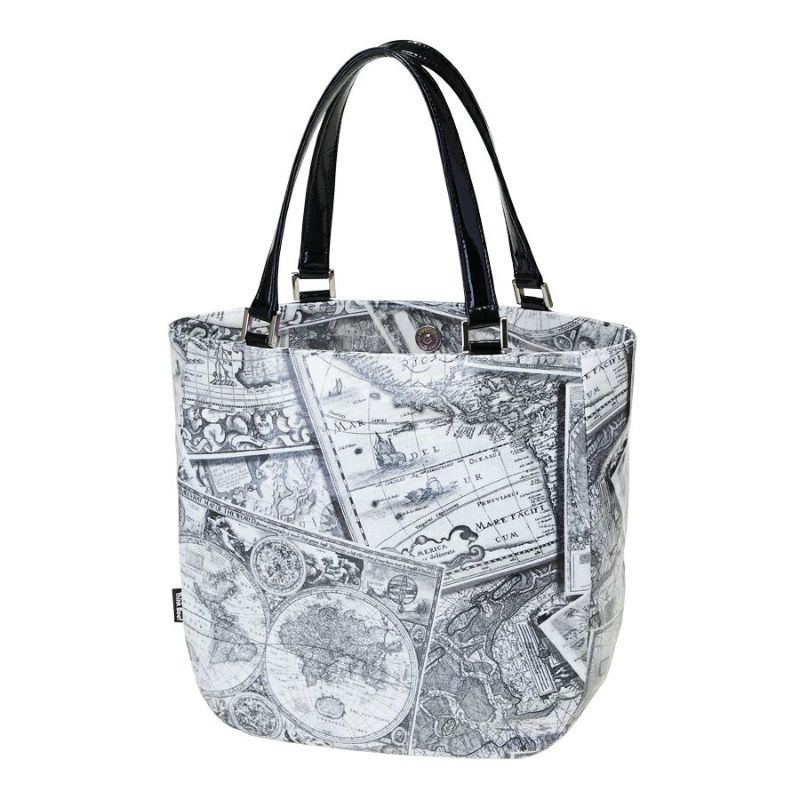レトロな世界地図をプリントしたスペイン製生地を使用。