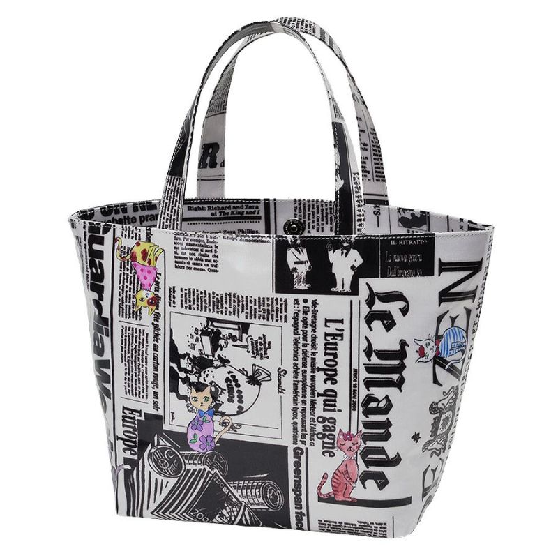 | 素材 | | 表地原産国 | 日本 | | 表地 | コットン100%(PVCコーティング) | | 裏地 | コットン100% | | ハンドル | 表地に同じ | | その他 | - | | サイズ(約) | | 本体(突起部を除く最大) | H 24 × W 36 × D 14 cm | | ハンドル立ち上がり | 15 cm/- | | ショルダーストラップ長さ | -/- | | 重さ | 284g | | | 仕様 | | 開口部 | マグネットホック式 | | メイン室 | 1 /- | | 内側 | ファスナー付ポケット×1・オープンポケット×2 | | 外側 | - | | ハンドル | 2 /- | | 底鋲 | - | | その他 | 作品により柄の出方が異なる場合があります | | 補足情報 | | - | |