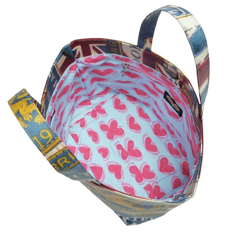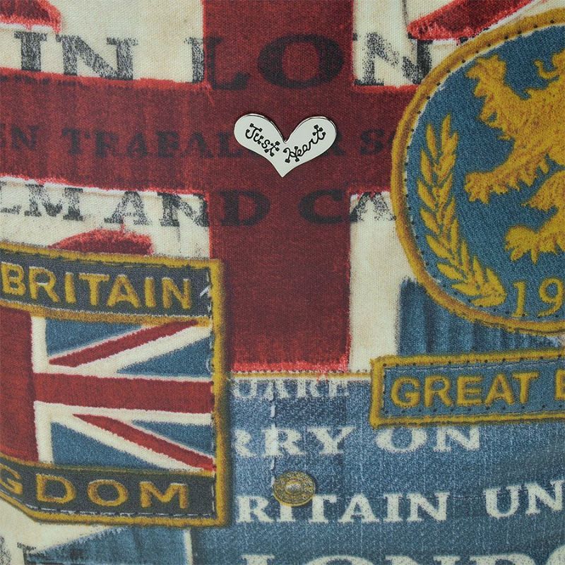 表地は英国をモチーフにした様々なエンブレム柄と、ユーズド感漂うデニムを思わせるかすれた色合いが、ちょっぴりワイルドでカッコいい☆