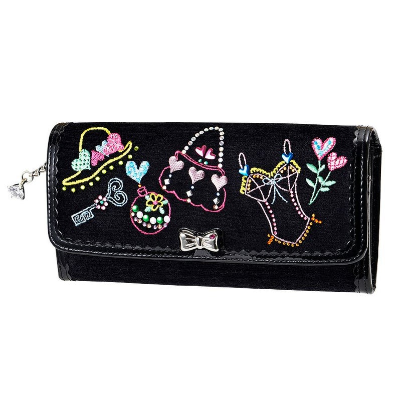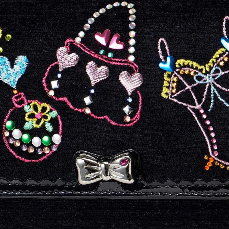 艶感のあるトルコ製のブラック起毛生地に、細いタッチのミシン刺繍でプリンセスのお洒落アイテムを表現しました。