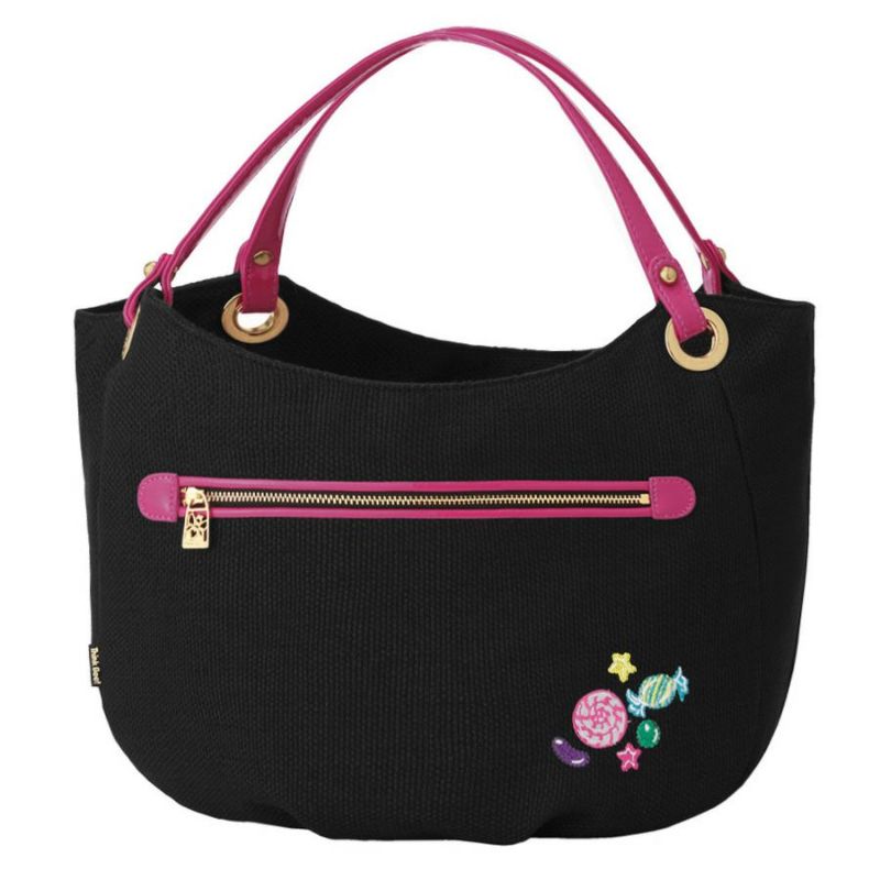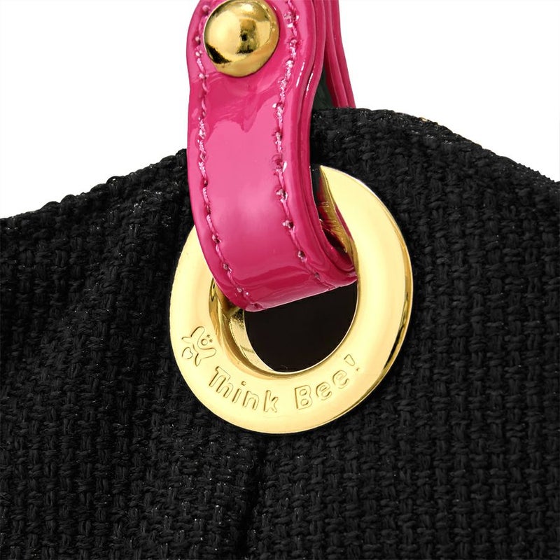 ゴールドのロゴ入りハトメリングに、エナメルピンクハンドルで華やかさもアップ。