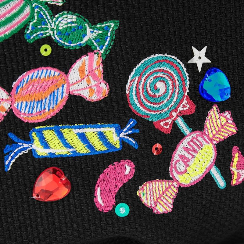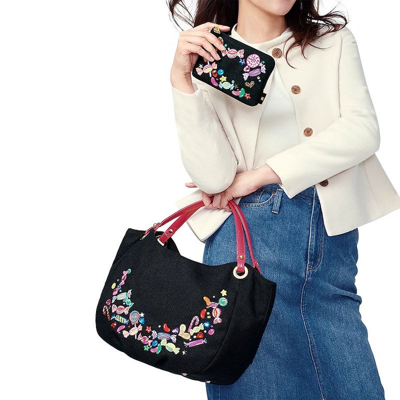 ベースのトルコ製ブラック織生地は、さらっとしていてシーズンレスの素材感。ポップアートのような刺繍やスパンコールの配色が絶妙で、ほどよい大人の甘さを表現。