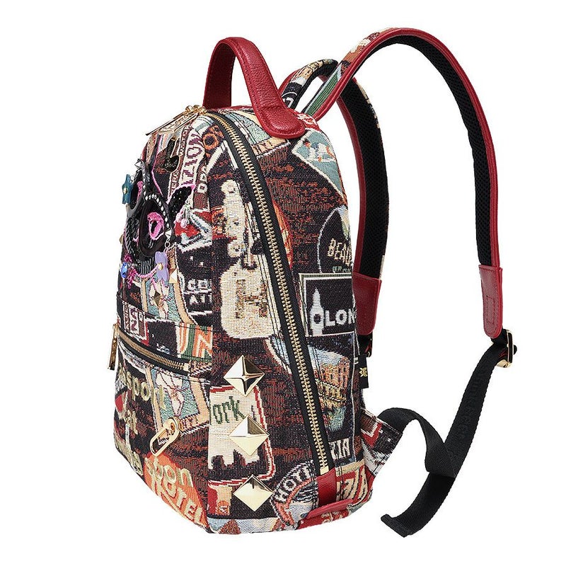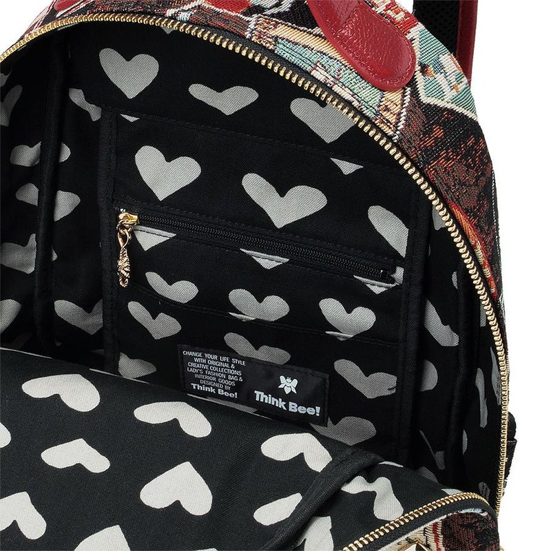 内側の背中側には吊り下げタイプのオープンポケットとファスナーポケットが1つずつ付いて、大切な小物や細々したものの収納に。