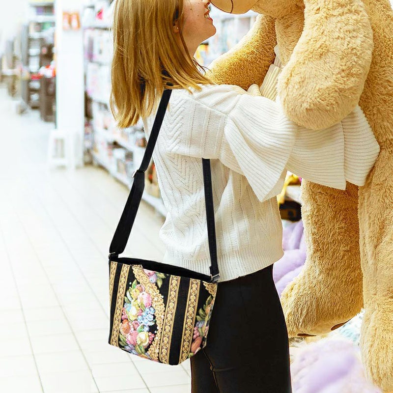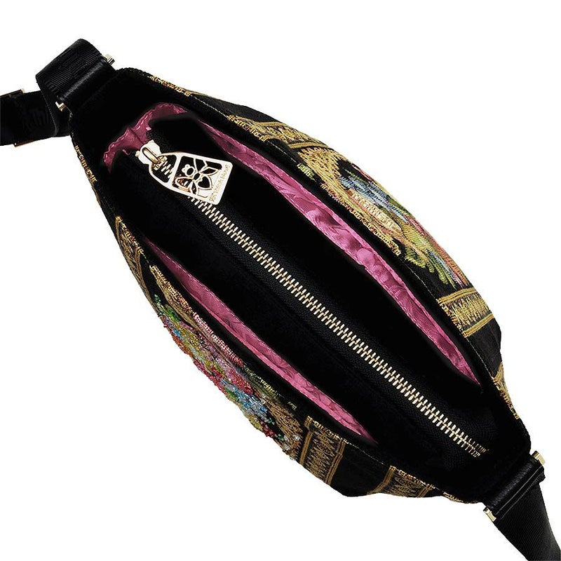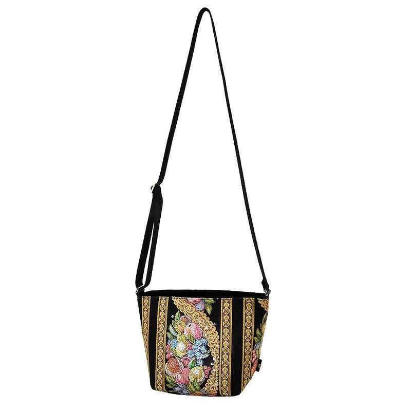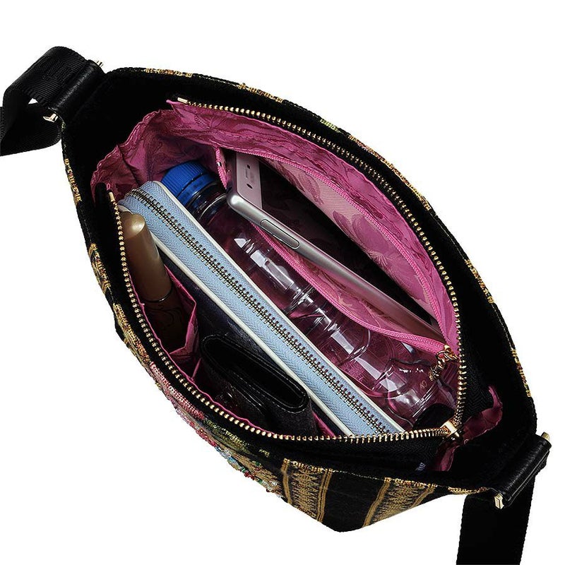 コットン10% | | ストラップ | ナイロン・牛革 | | その他 | - | | サイズ(約) | | 本体(突起部を除く最大) | H 19 × W 26.5 × D 13 cm | | ハンドル立ち上がり | -/- | | ショルダーストラップ長さ | 71~133 cm/無段階調節 | | 重さ | 380g | | | 仕様 | | 開口部 | ファスナー式 | | メイン室 | 1 /- | | 内側 | ファスナー付ポケット×1・オープンポケット×2・前後オープンポケット×2 | | 外側 | - | | ハンドル | - /ショルダーストラップ | | 底鋲 | 4 | | その他 | 作品により柄の出方や装飾が異なる場合があります | | 補足情報 | | - | |