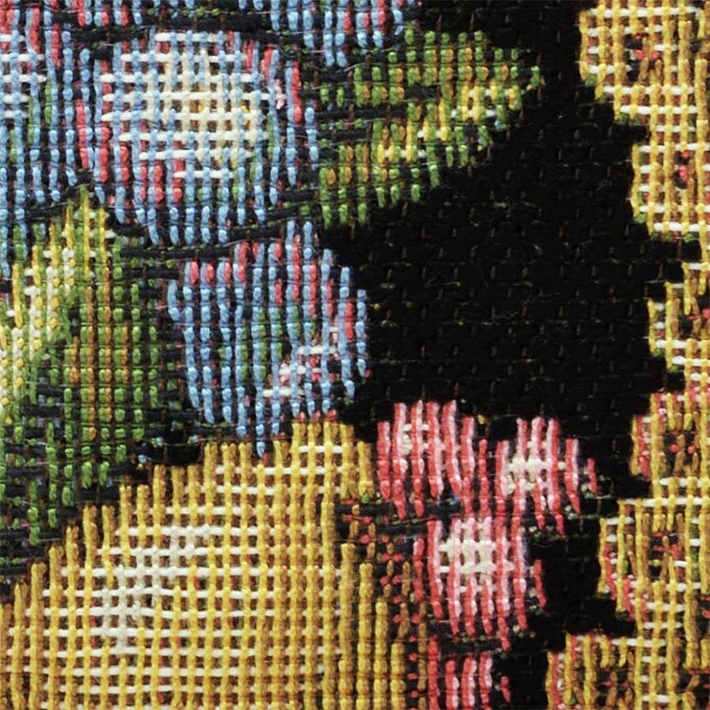 このイタリア製ゴブラン織生地に、シンクビー! が得意とするビーズ&スパンコールで煌めき装飾を丁寧に施しました。