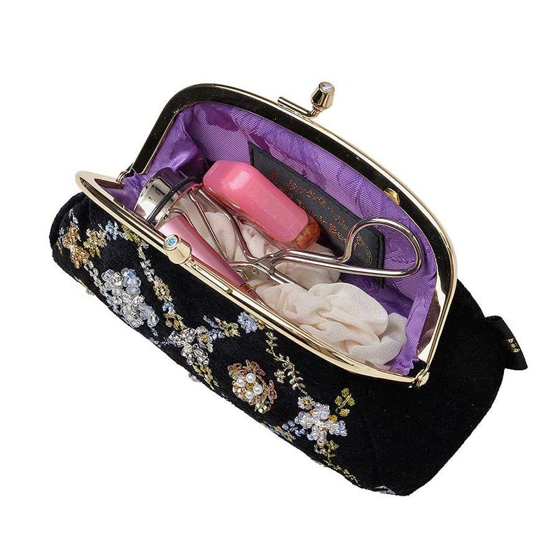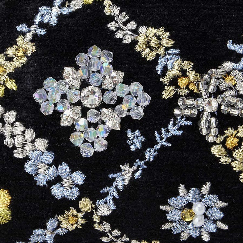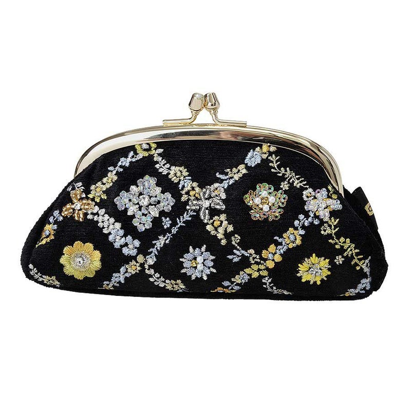 スパンコール・クリスタルガラス | | サイズ(約) | | 本体(突起部を除く最大) | H 7.5 × W 15 × D 5 cm | | ハンドル立ち上がり | -/- | | ショルダーストラップ長さ | -/- | | 重さ | 76g | | | 仕様 | | 開口部 | 口金式 | | 内側 | - | | 外側 | - | | その他 | 作品により装飾が異なる場合があります 表面片側にビーズ刺繍 | | 補足情報 | | - | |