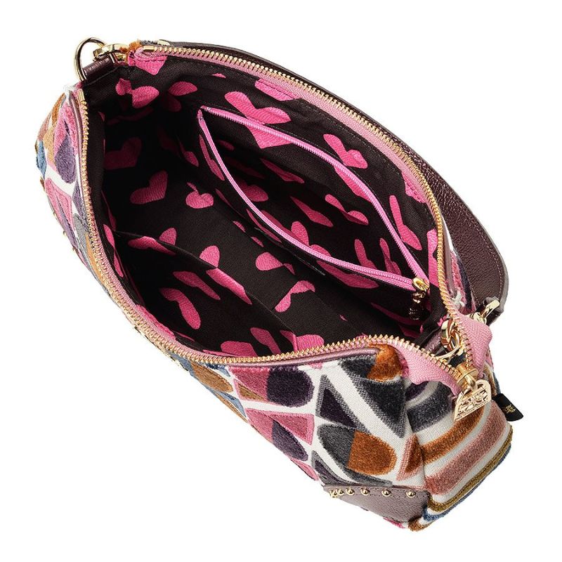 開口部は安心のファスナー式で内側はハート柄のプリント生地を使用し、ポップで楽しい雰囲気。