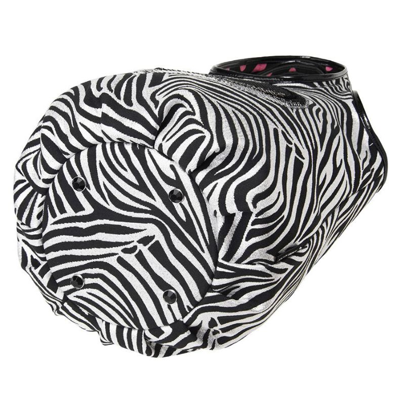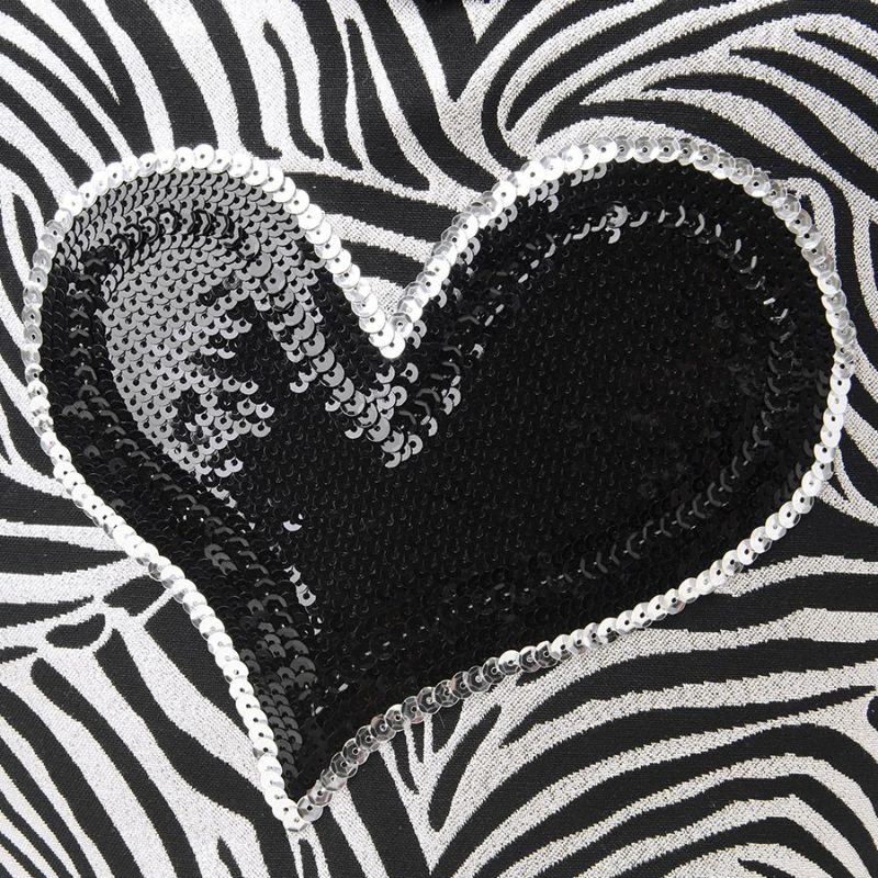 シルバー×ブラックのゼブラ柄生地に、シルバーのスパンコールで縁取りを施したブラックのビッグハートを刺繍。ゼブラとハートがキラキラ輝き、持つだけで注目の的。