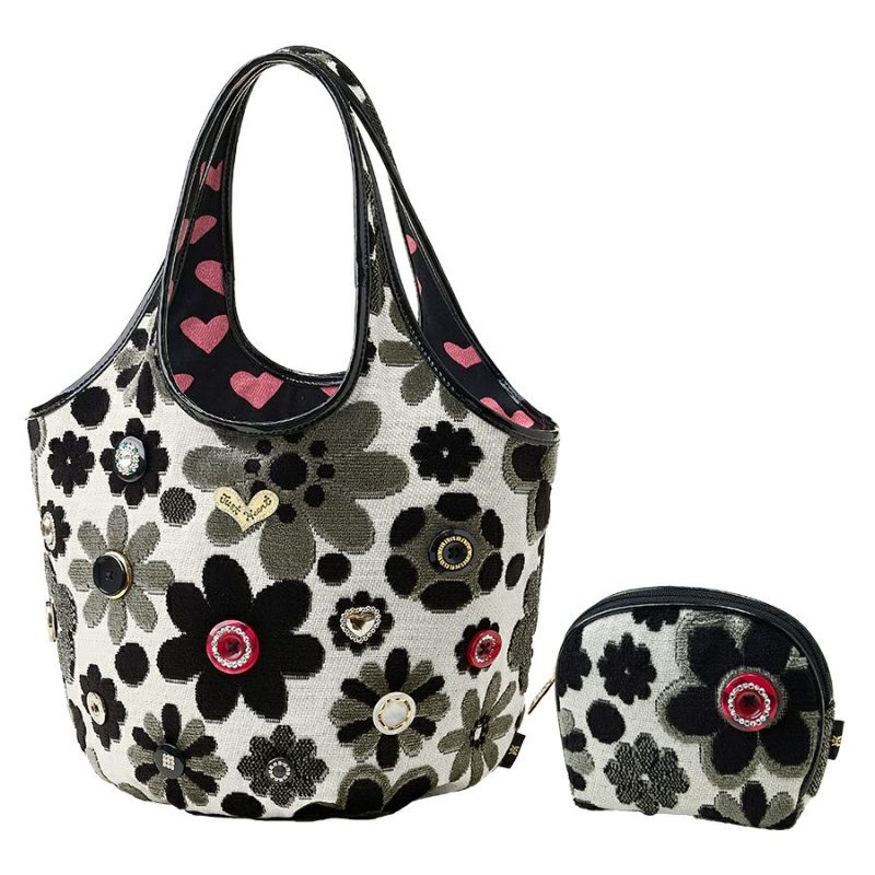 お揃いのポーチは大きく開くファスナー式。コスメや小物をマルチに収納できる、ほどよいサイズ感でお出掛けに便利です。