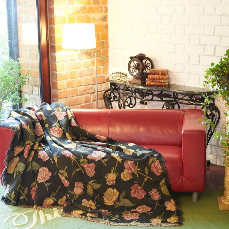 大きなサイズのマルチカバーにぴったりの大胆な構図のフラワーモチーフは、上品かつ華やかな印象。