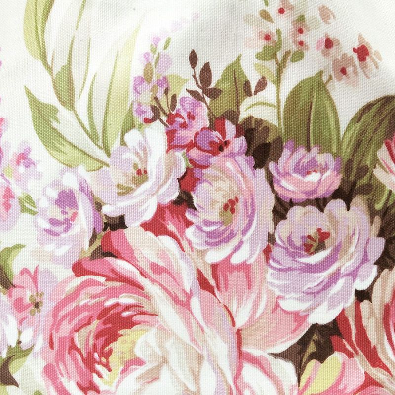 スペイン製の表地は、オフホワイトをベースに淡いピンクやパープルのグラデーションで描かれた大輪の薔薇。