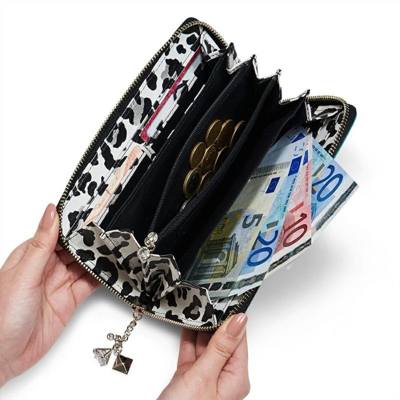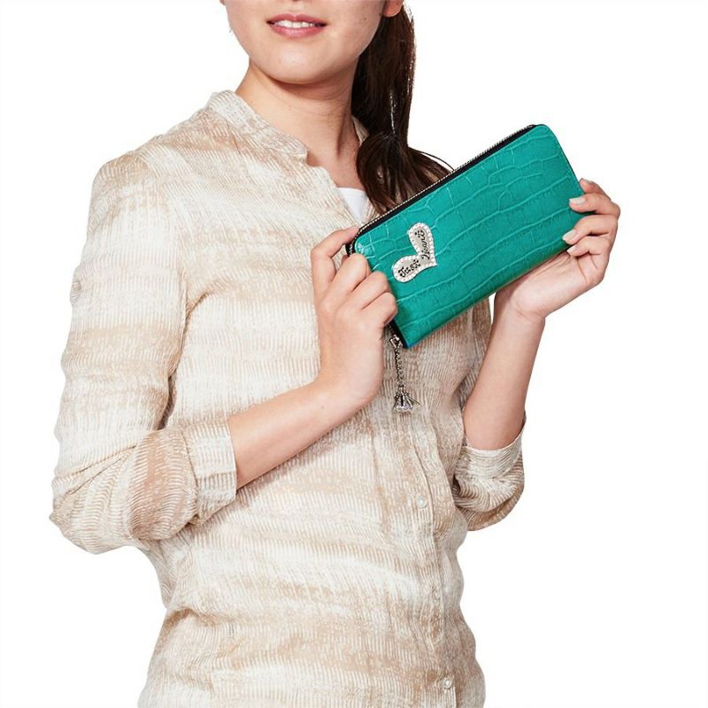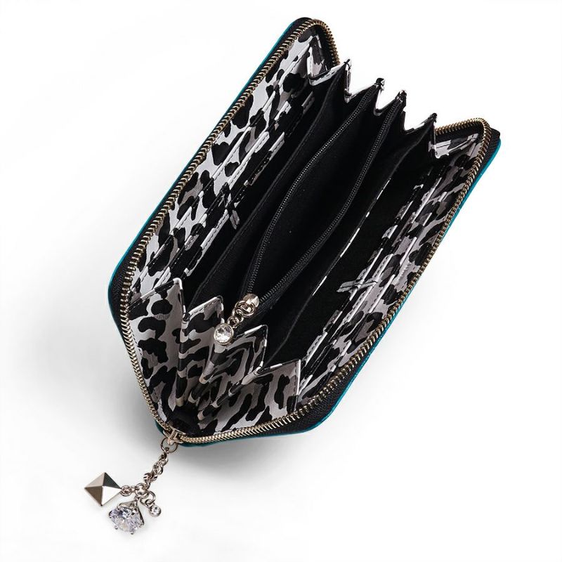 ◆クロコ型押しレザーのボディに 開けるとレオパード柄のサプライズ