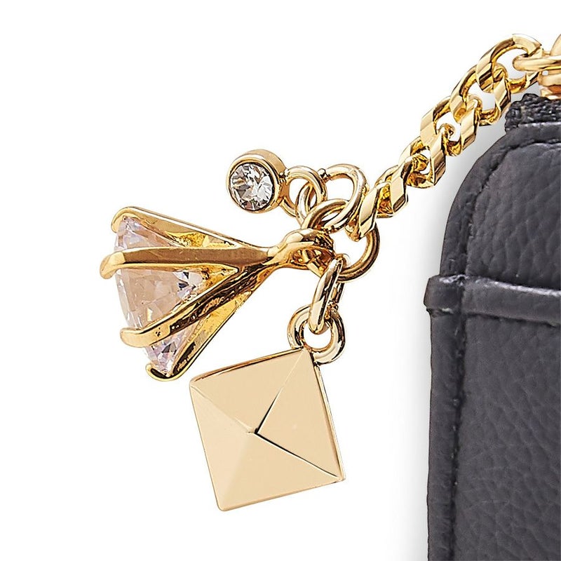引手は大ぶりのキュービックジルコニアと、小粒のスワロフスキー・クリスタルがキラキラ揺れるチェーンタイプ。長めのチェーンが持ちやすく、開閉もスムーズ。