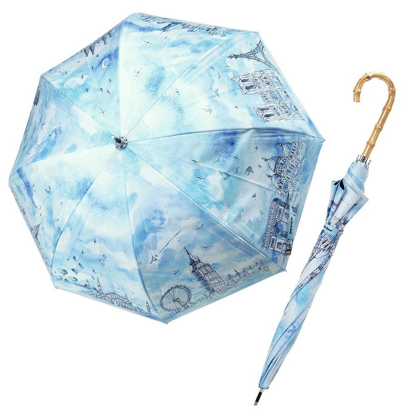 手になじむバンブーハンドルを採用。持ちやすさはもちろん傘を閉じた時のバランスも美しいよう、通常より少し長めにしました。シックでスリムな先端部は、どのデザインもシルバーとブラックで統一してスタイリッシュに。