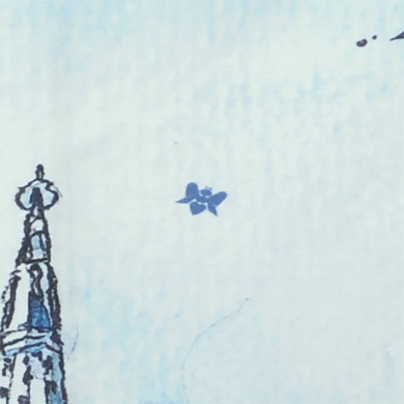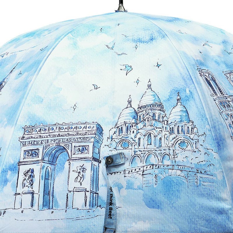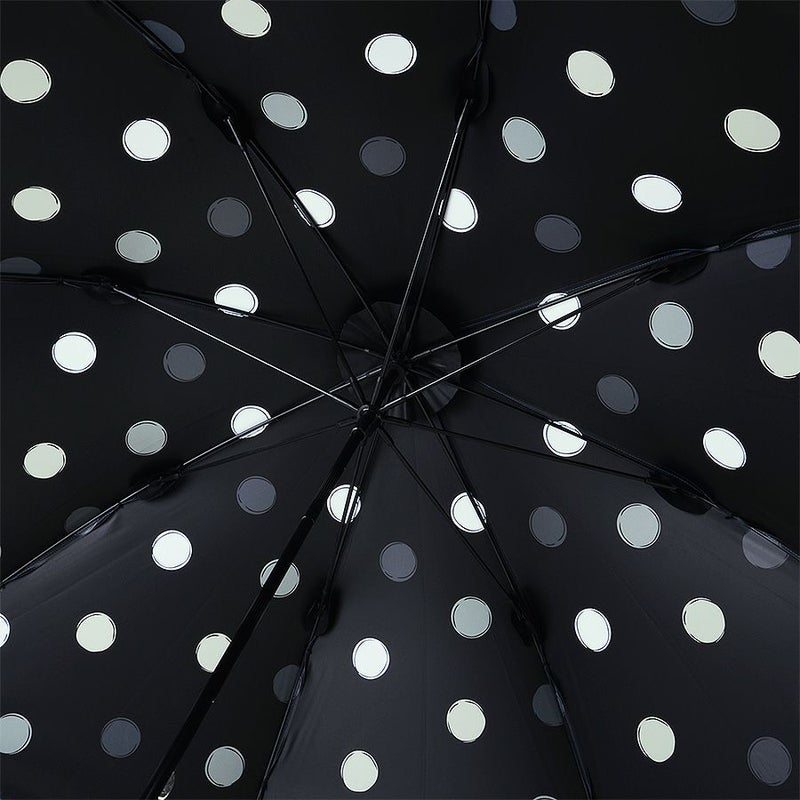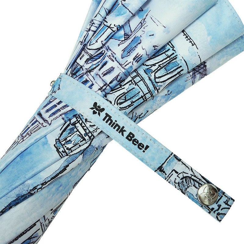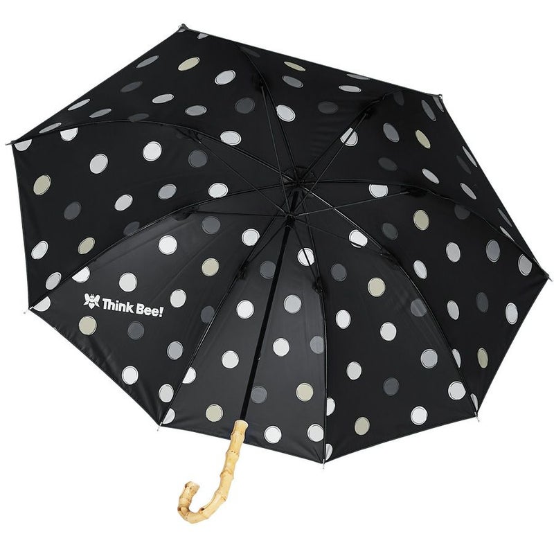 表布はもちろん裏布もオリジナル。傘を開けると遊び心たっぷりのドット柄にThink Bee!のロゴをあしらいました。