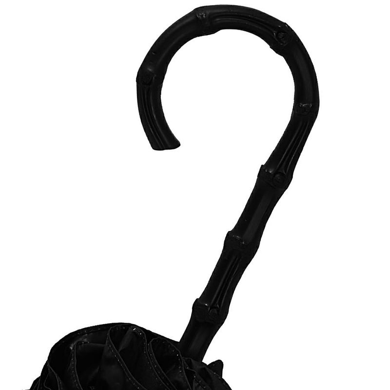 柄に合わせてブラックのバンブーハンドルを採用。手になじみ持ちやすさはもちろん、傘を閉じた時のバランスも美しいよう、通常より少し長めにしました。シックでスリムな先端部は、どのデザインもシルバーとブラックで統一してスタイリッシュに。