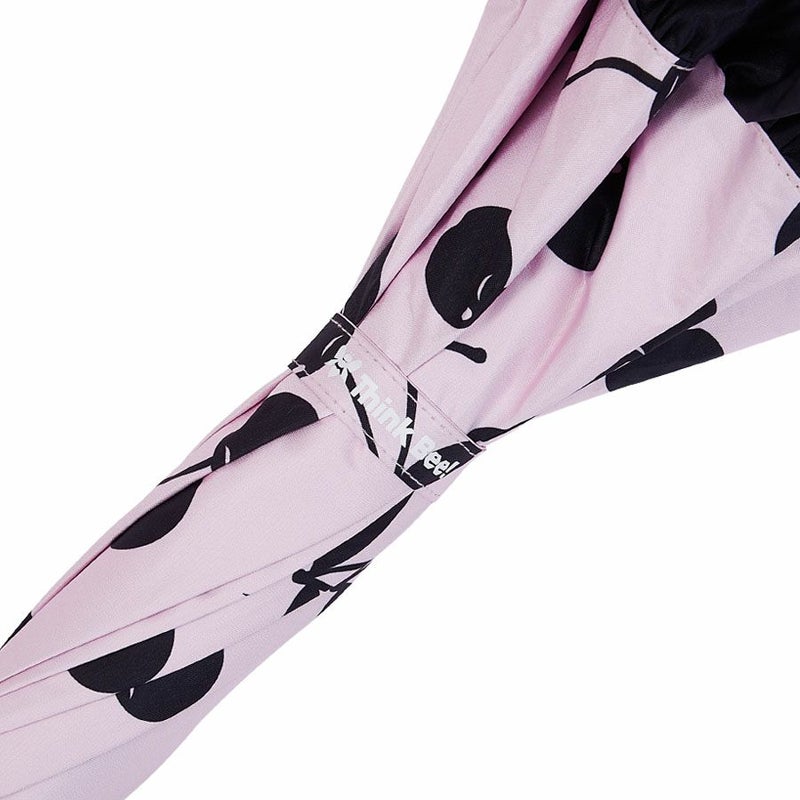 表布はもちろん裏布もオリジナル。傘を開けると遊び心たっぷりのドット柄にThink Bee!のロゴをあしらいました。