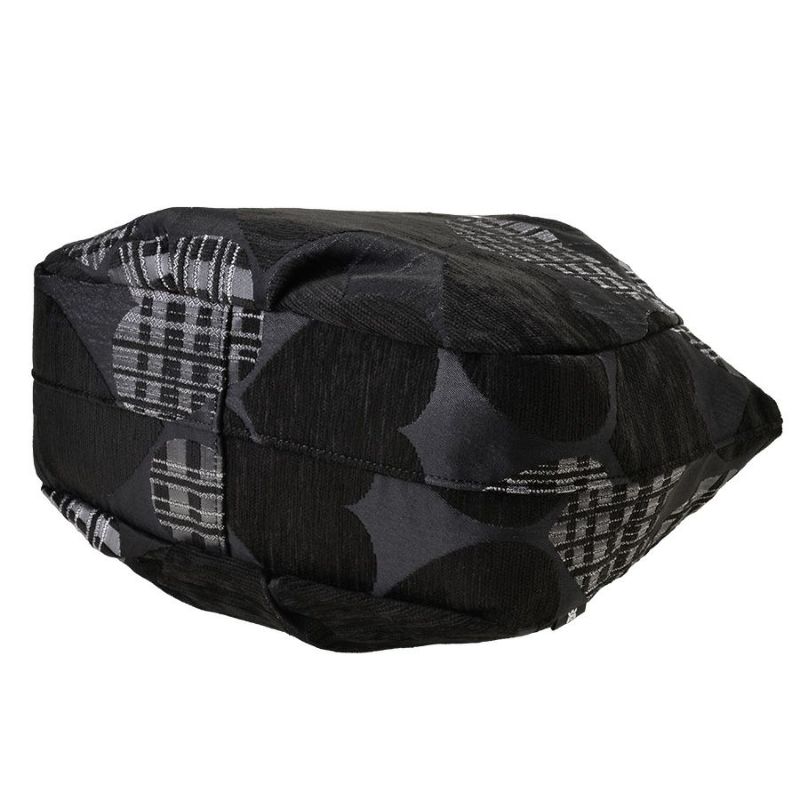 ほのかな光沢のあるブラック地に起毛したキーカラーやメタリックチェックのハートが並んだトルコ製の織生地は、見る角度により色の濃淡など変化が楽しめます。