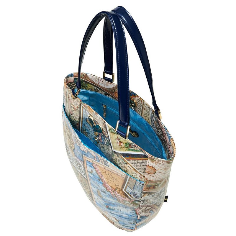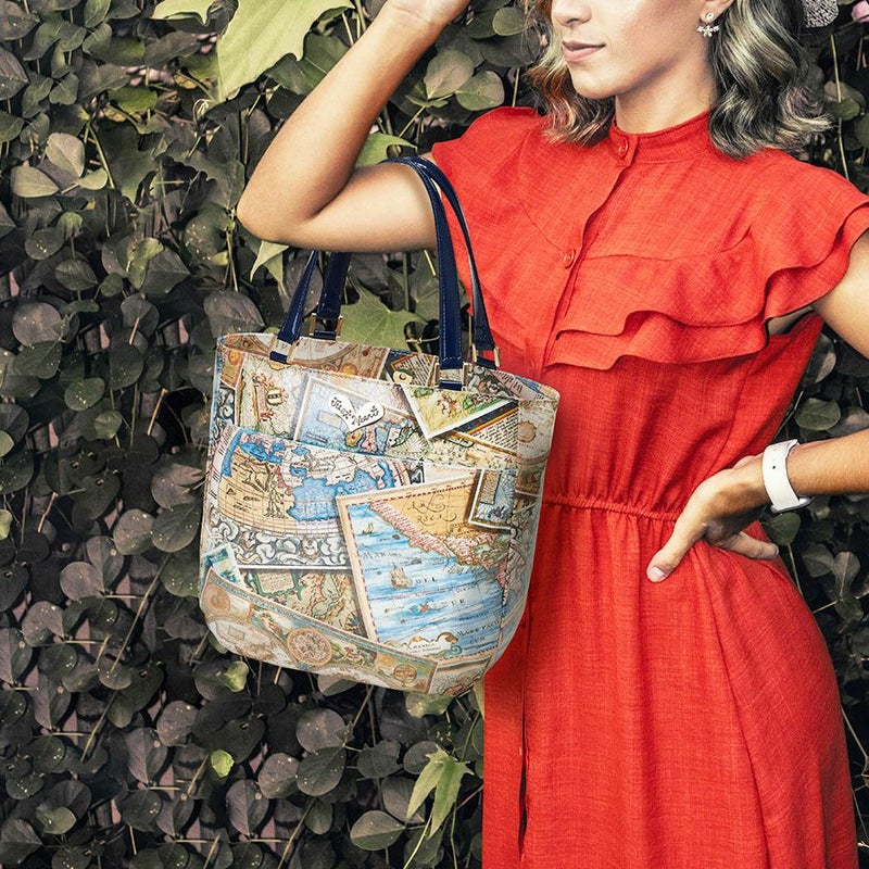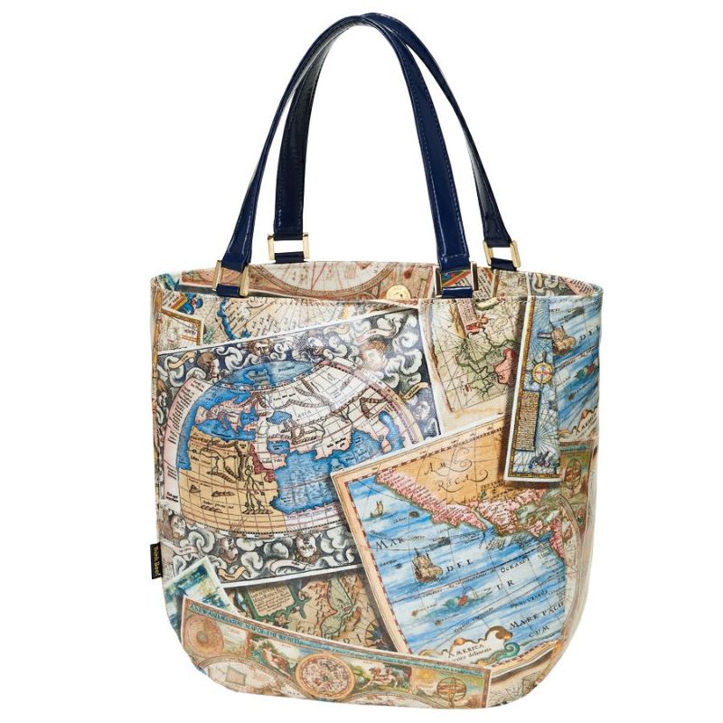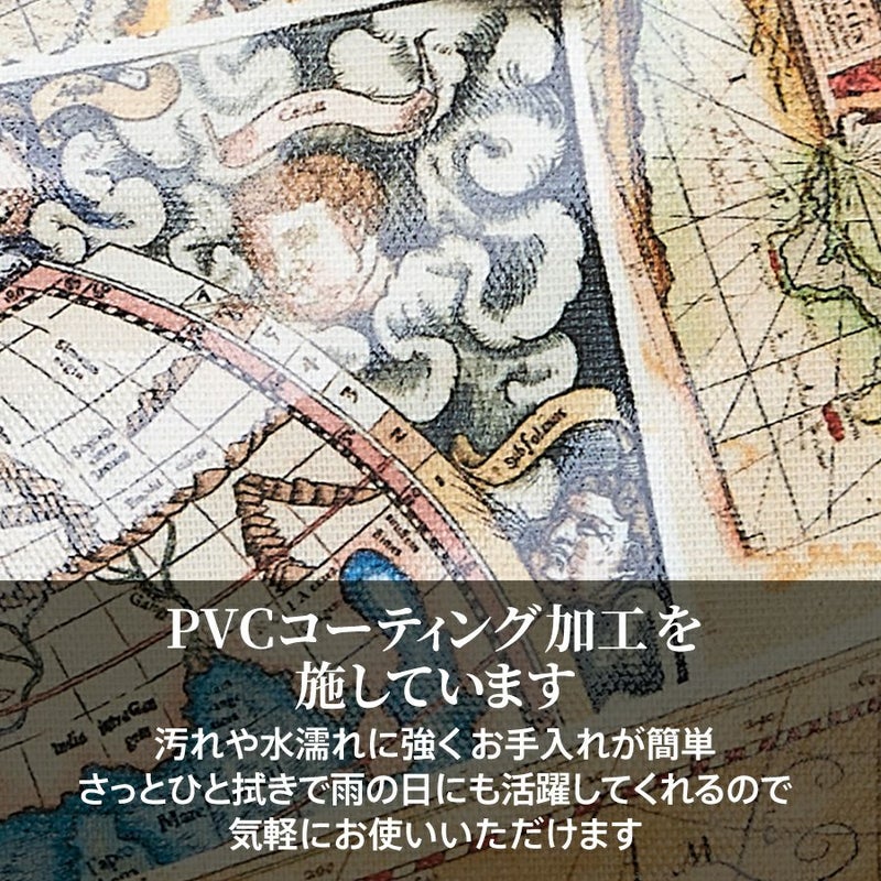 レトロな世界地図をプリントしたスペイン製生地を使用。