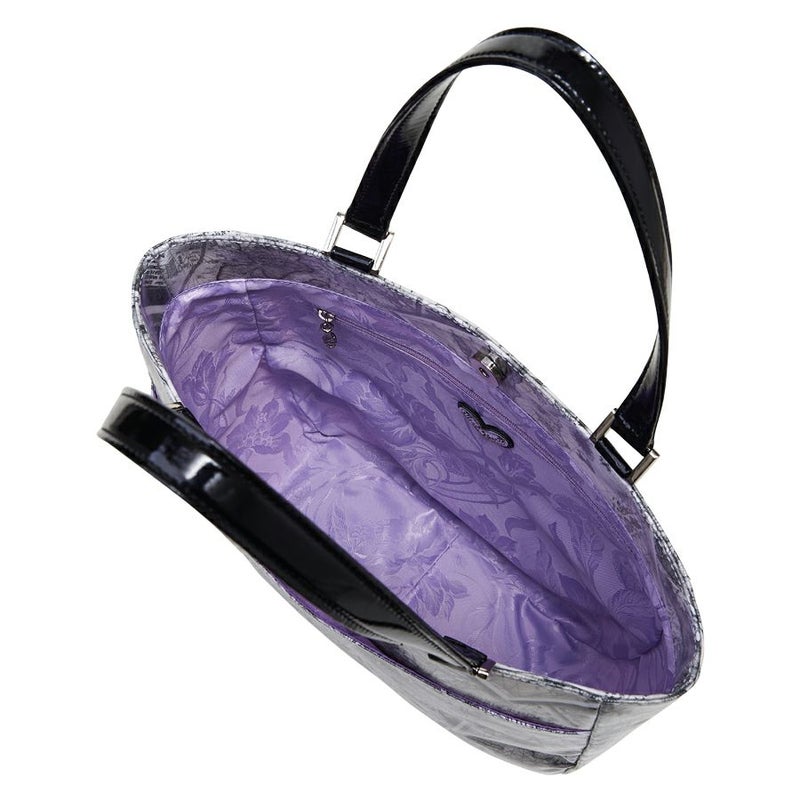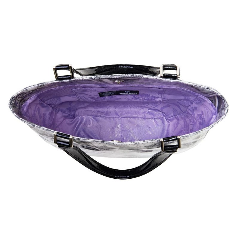 裏地はモノトーンの表地に対して、気品溢れるバイオレットの花柄ジャカード織生地を合わせたので、洗練され上品で中身が見やすいのも嬉しい。