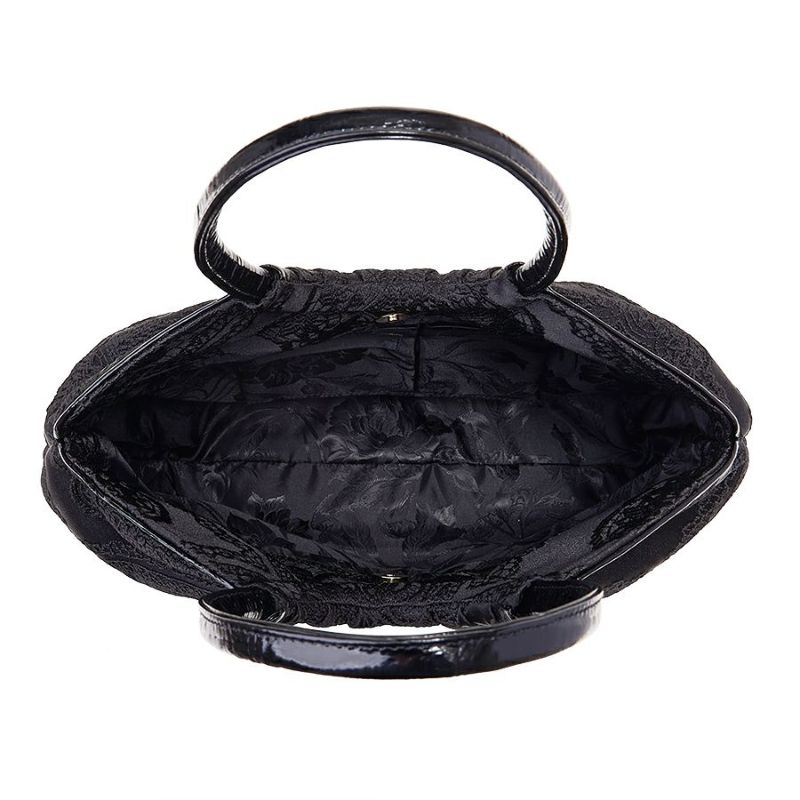 裏地はハンドルに合わせてシックにブラックの花柄ジャカード織生地。