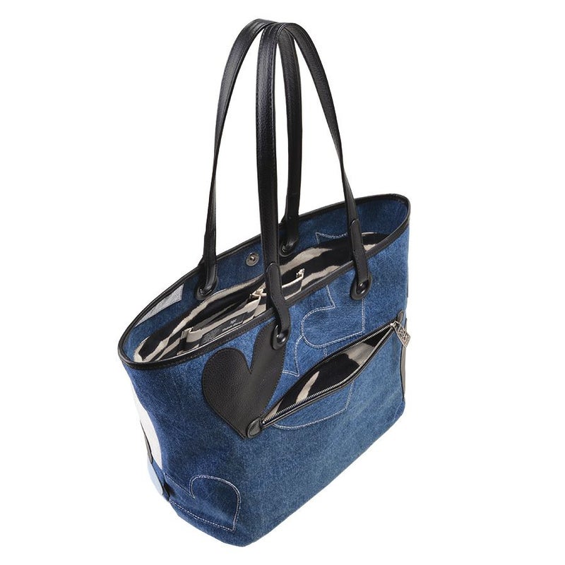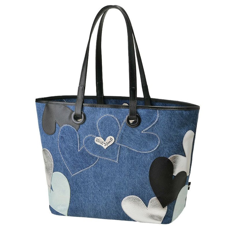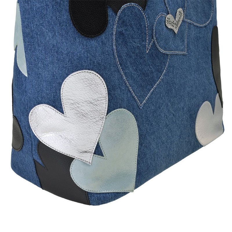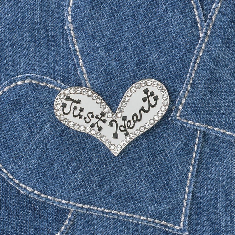 洗いをかけてユーズド感を出した、日本が誇る岡山のハイクオリティデニムをベースに、箔押しなどの表情豊かな牛革やサテン生地、デニムの生地目の変化にこだわって銀糸のステッチを施したそれぞれのハートたちを遊び心たっぷりにアップリケ。