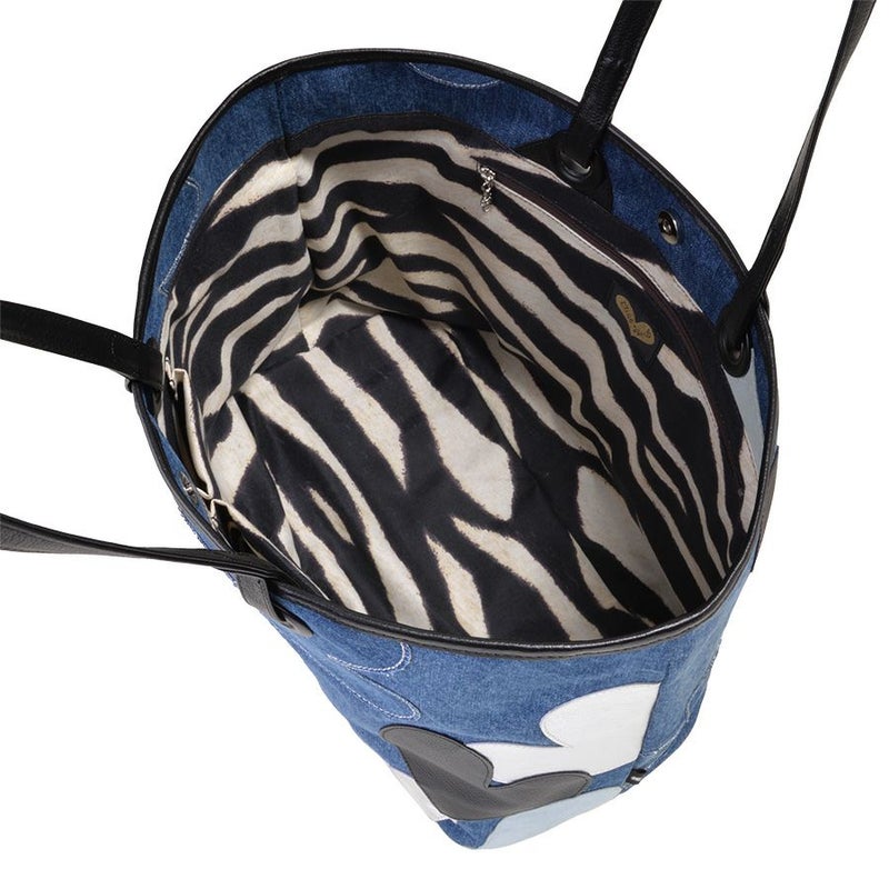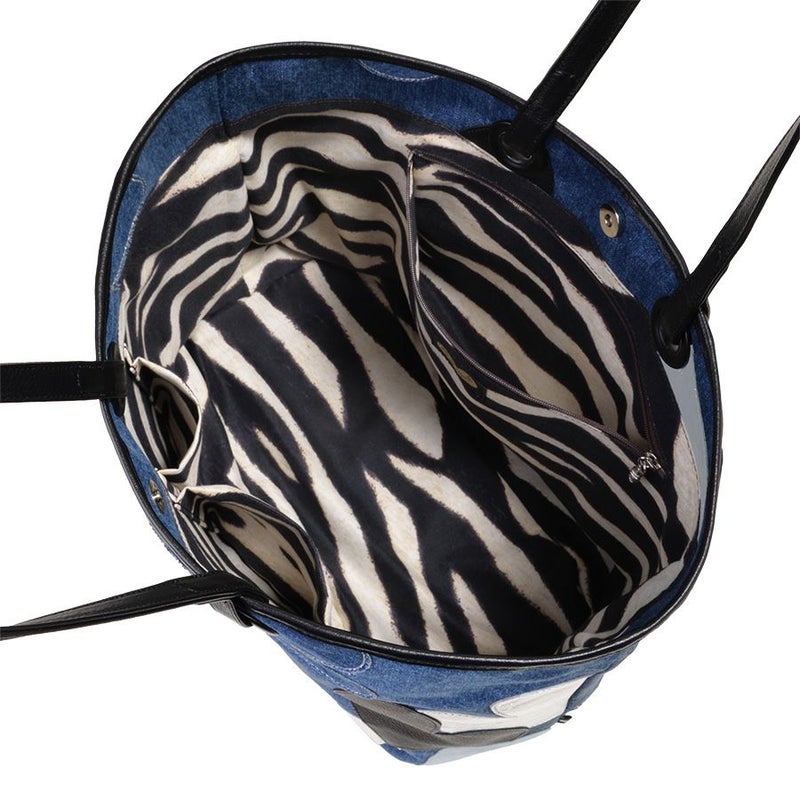 クールなゼブラのプリント生地を裏地に使用し、カジュアルテイストのデニムに対して内装は辛口な仕上がりに。