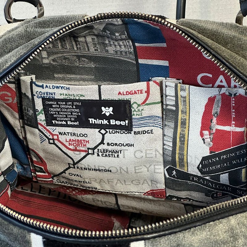 ファスナーを開くと、カラフルなロンドン柄の内装が顔をのぞかせ、遊び心をそっと添える。