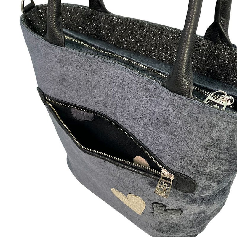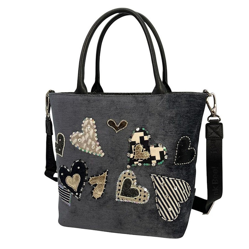 〈ハートダーリン〉は、ビーズとスパンコールを贅沢に敷き詰めたハートのアップリケが、光を受けるたびにきらめき、角度によって表情を変える印象的なデザインです。