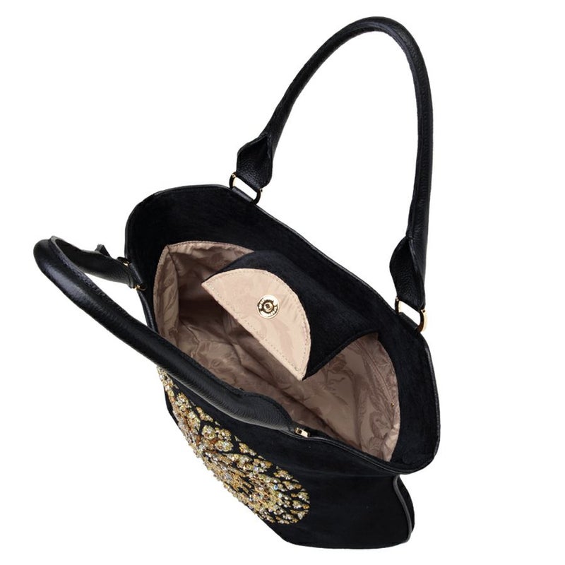 底鋲はブラックで、バッグを膝に置いた時にチラリと見えて、隠れたポイントに。