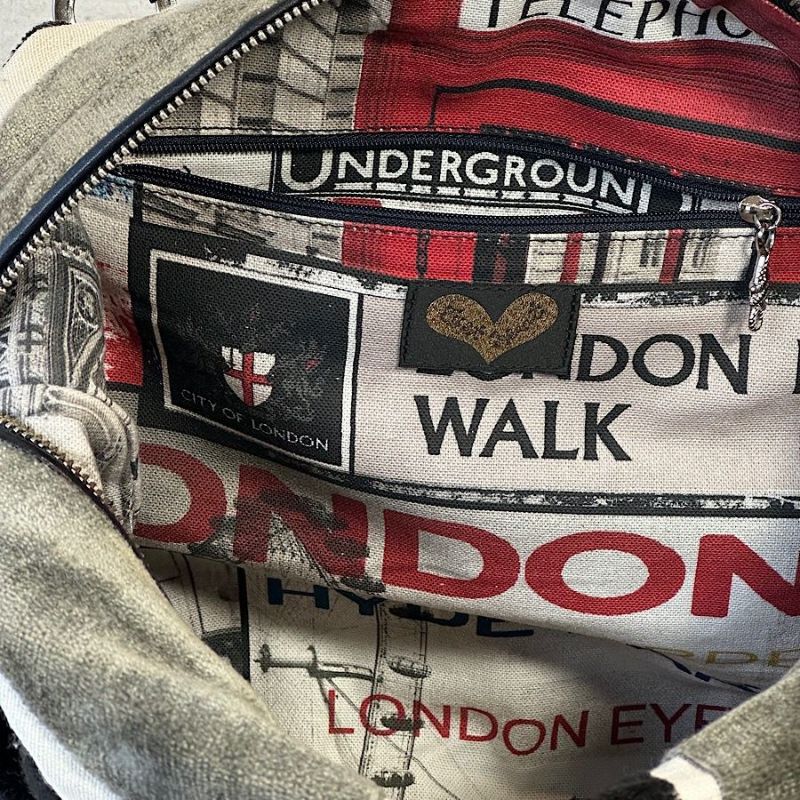 ファスナーを開くと、カラフルなロンドン柄の内装が顔をのぞかせ、遊び心をそっと添える。
