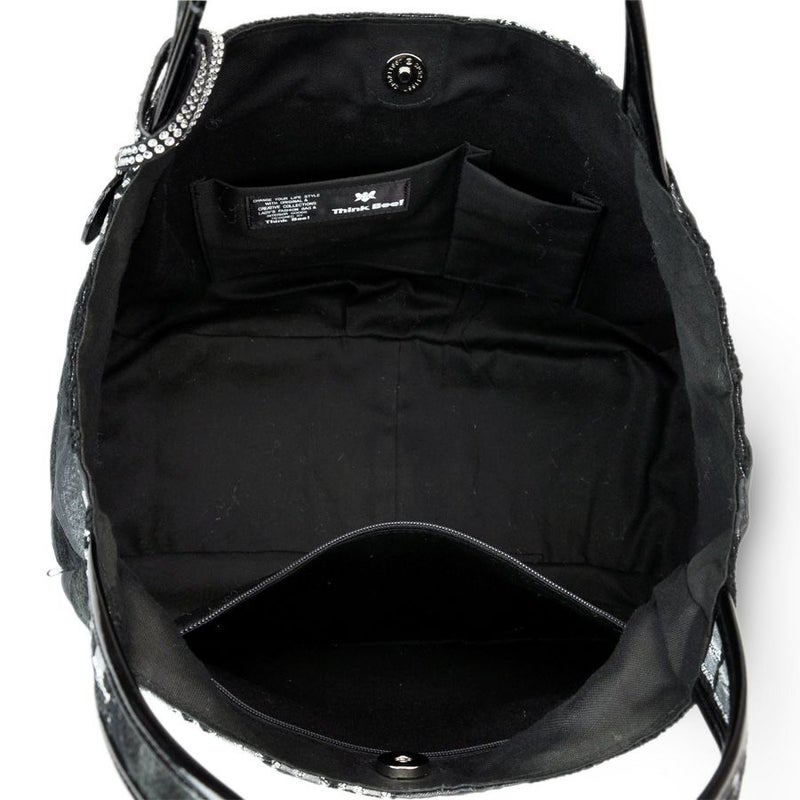 開口部がマグネットホックで大きく開くので中が見やすく、内側にオープンポケット2つ、ファスナーポケット1つが付いた小物の整理がしやすい。