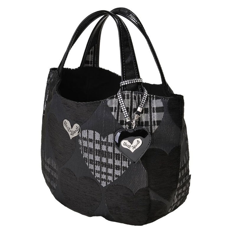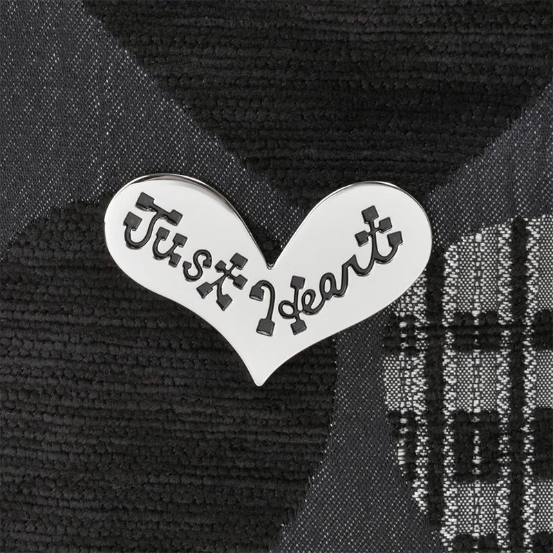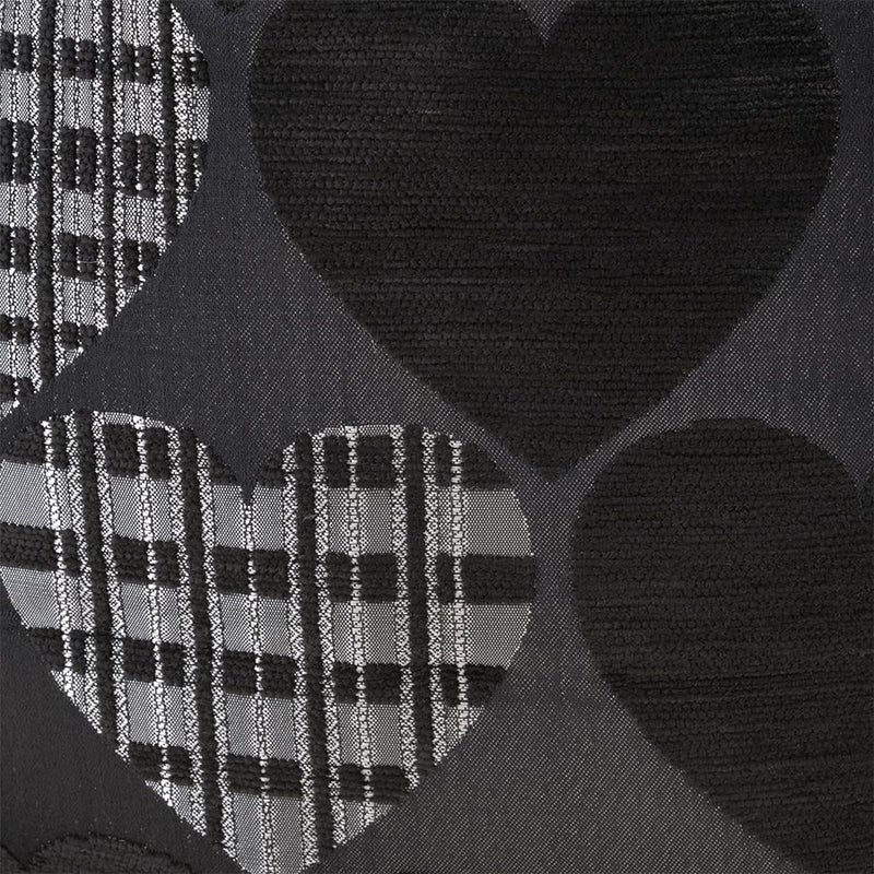 ほのかな光沢のあるブラック地に起毛したキーカラーやメタリックチェックのハートが並んだトルコ製の織生地は、見る角度により色の濃淡など変化が楽しめます。
