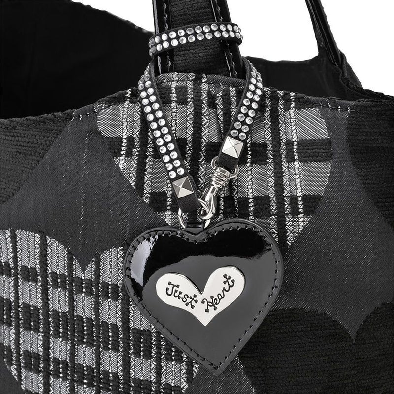 エナメルハートのチャームは、Just Heartロゴ入りプレートが付いたオリジナル。フックで簡単に付け外しできるので、ラインストーンがキラキラ輝くストラップを2重に巻いて、キラキラ度をアップさせたり、他のお気に入りのシンクビー!バッグに付けたりと、アレンジも自在。