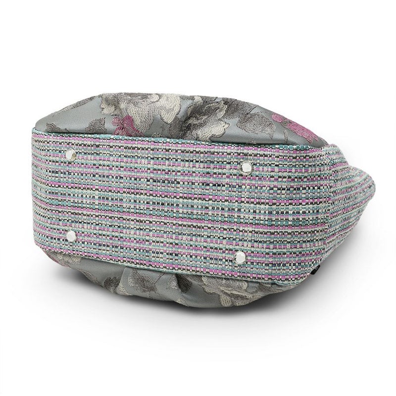 花柄×ツイードは、ローズ、グレーなどの色が互いにリンクし合うことで見事に調和し、洗練されたシックな作品に仕上がりに。いずれもトルコ製生地です。