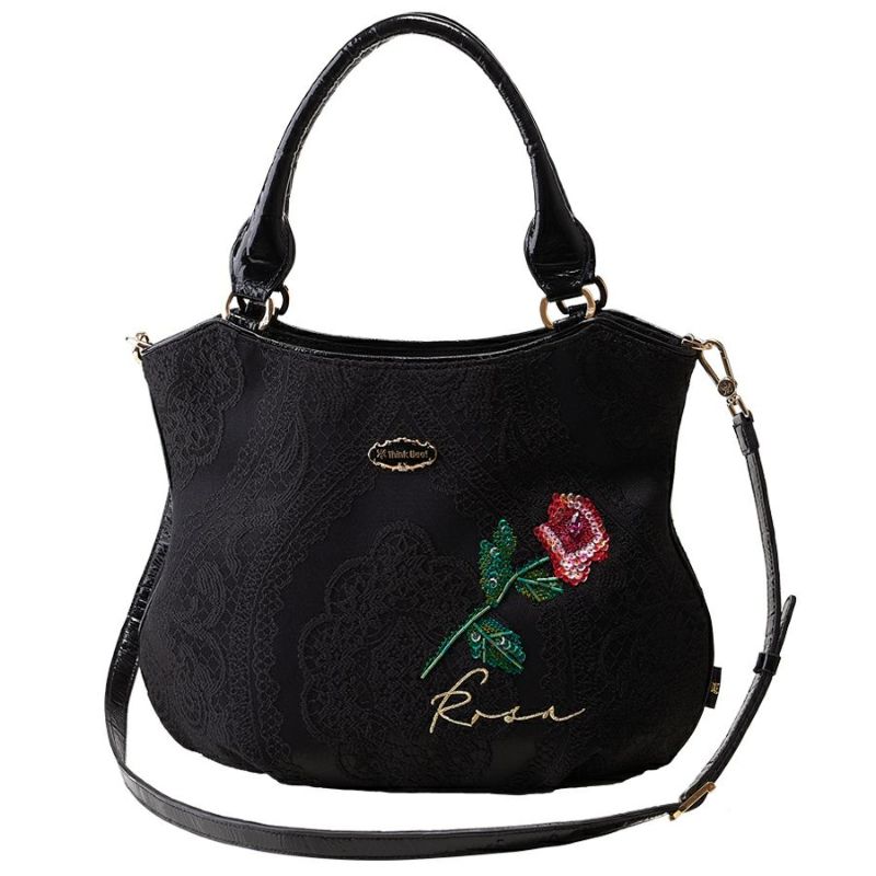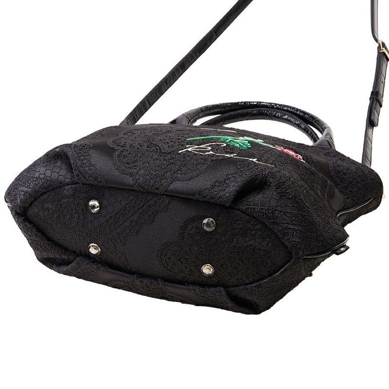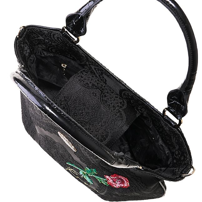 裏地はハンドルなどに合わせてシックなブラックの花柄ジャカード織生地でインパクト抜群。