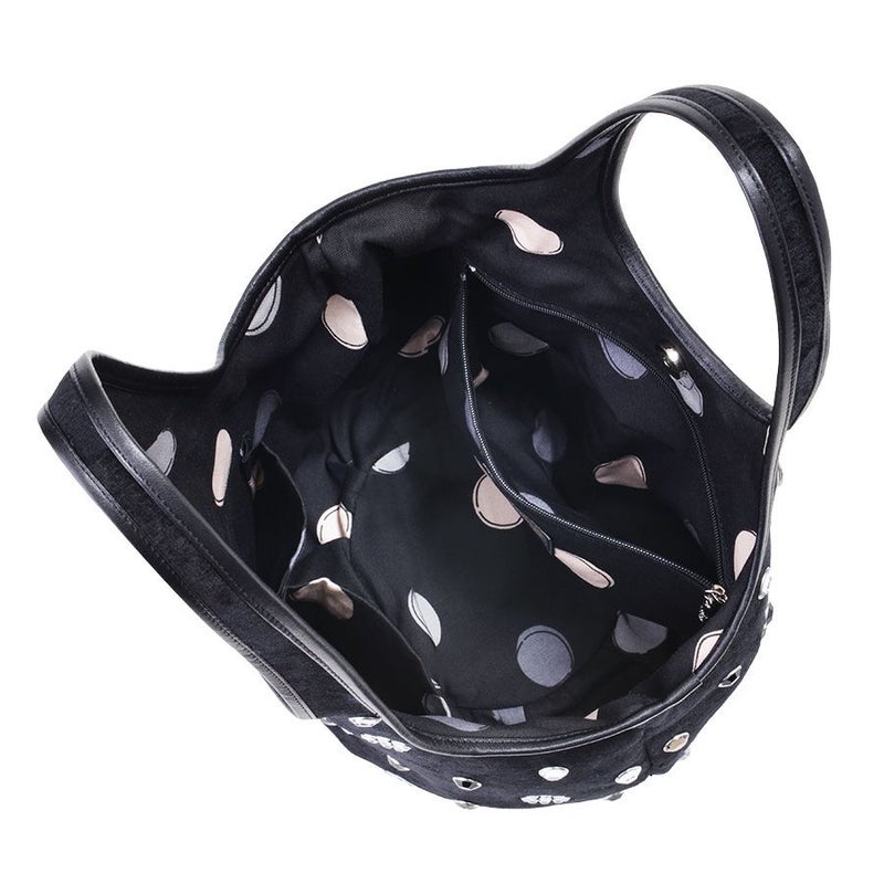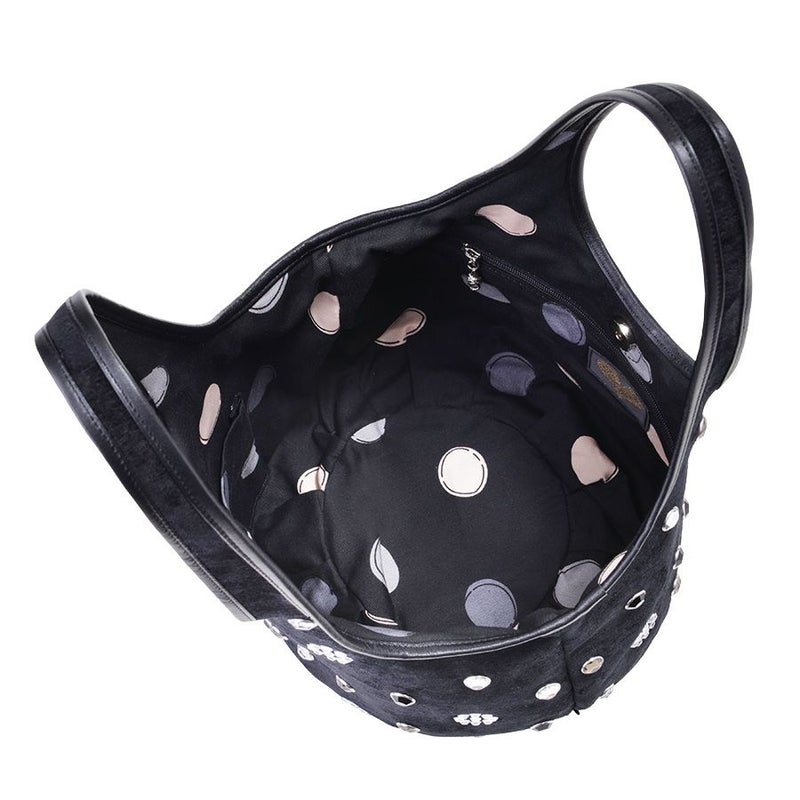 裏地もモノトーンの大きなドットプリント生地でリズミカルに。底鋲にはクリアのラインストーンがキラリ。